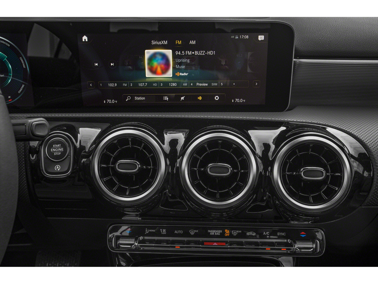- Radio: MBUX Multimedia System -inc: 7" touchscreen multimedia display, 5 USB-C ports, voice control w/natural language understanding and keyword activation, Bluetooth® connectivity and Mercedes me connect services w/trial period
